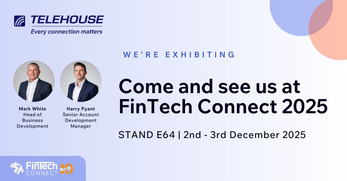We’re excited to be exhibiting at FinTech Connect 2025 – the UK’s leading event for the financial technology ecosystem. Join us at Stand E64 to discover how Telehouse’s secure, compliant, and ultra-low latency infrastructure powers the financial services industry.